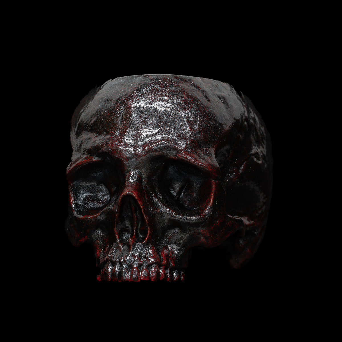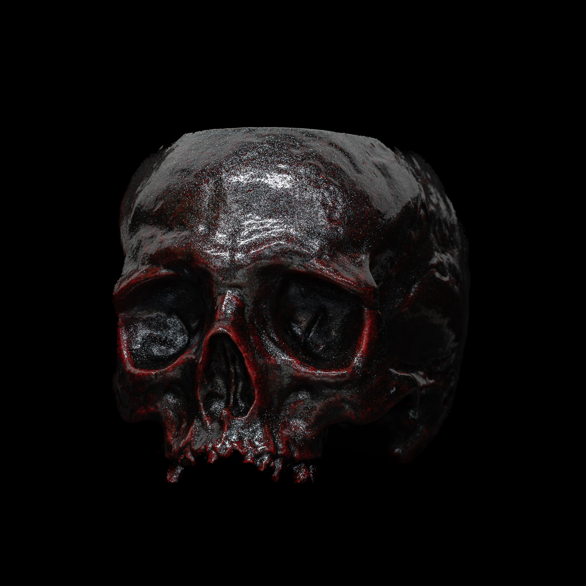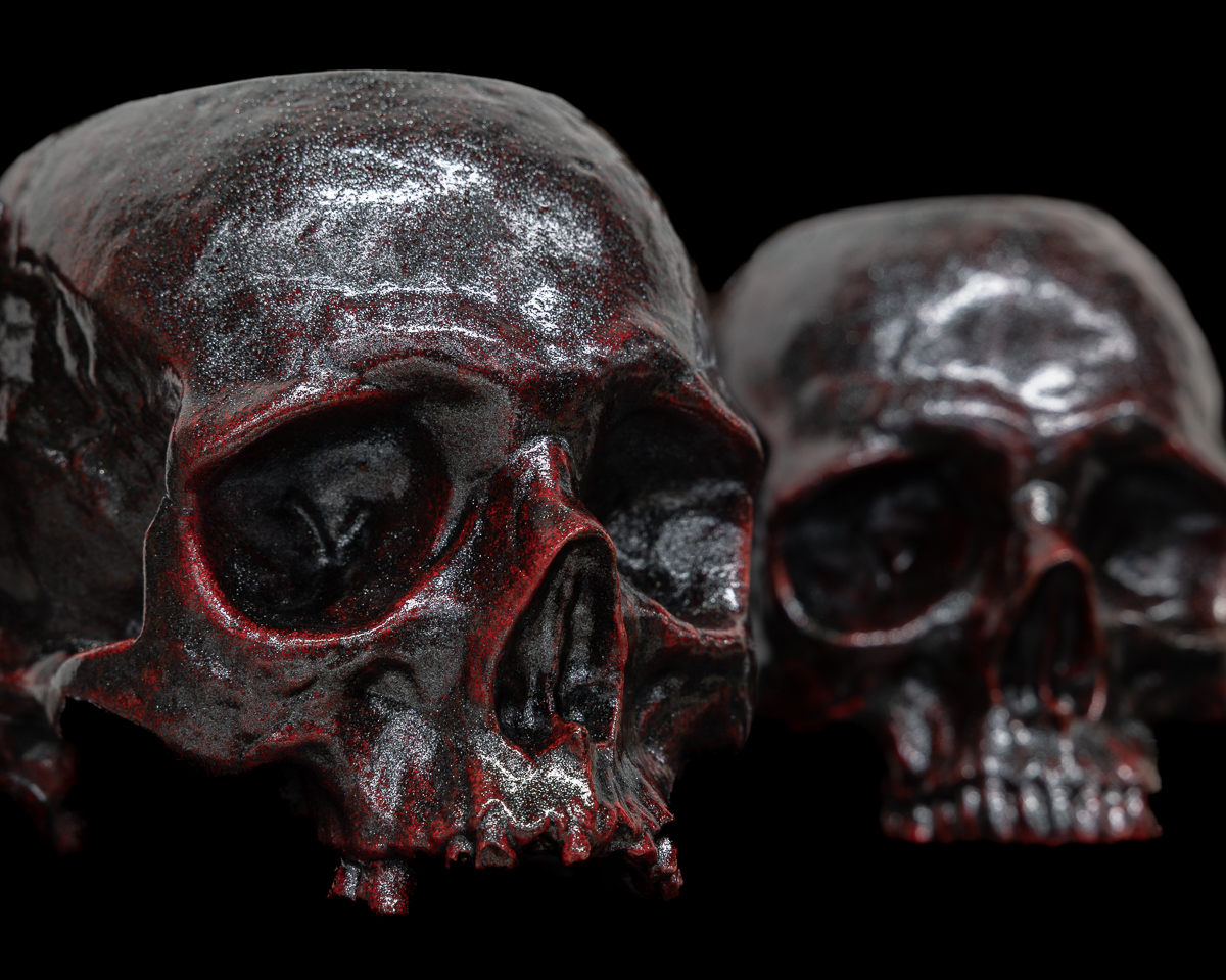 The Bloodstone Skull features a bright red base with metallic black overlays.