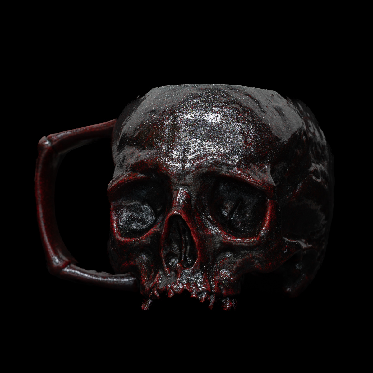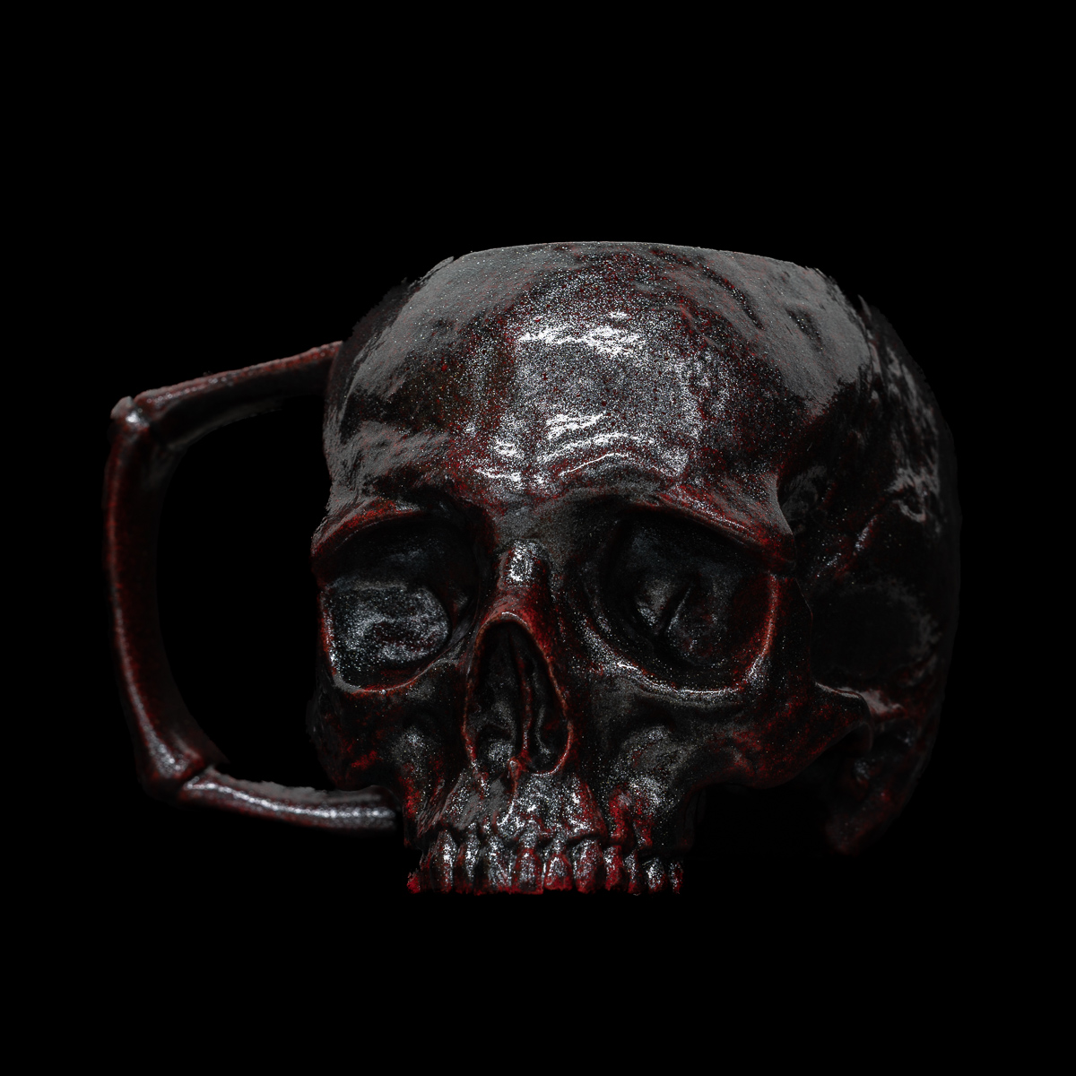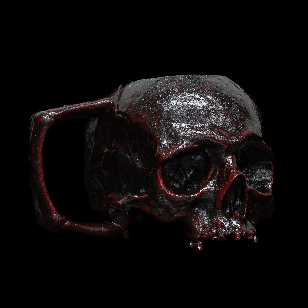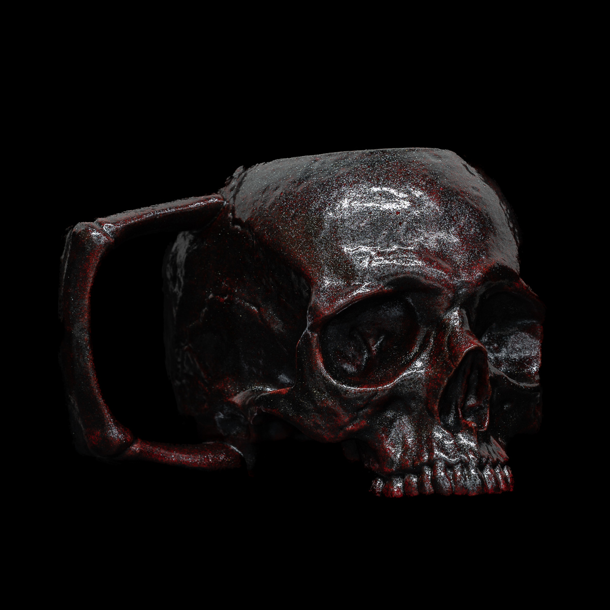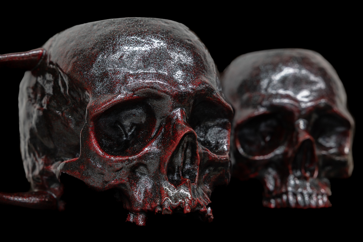 The Bloodstone Skull features a bright red base with metallic black overlays.