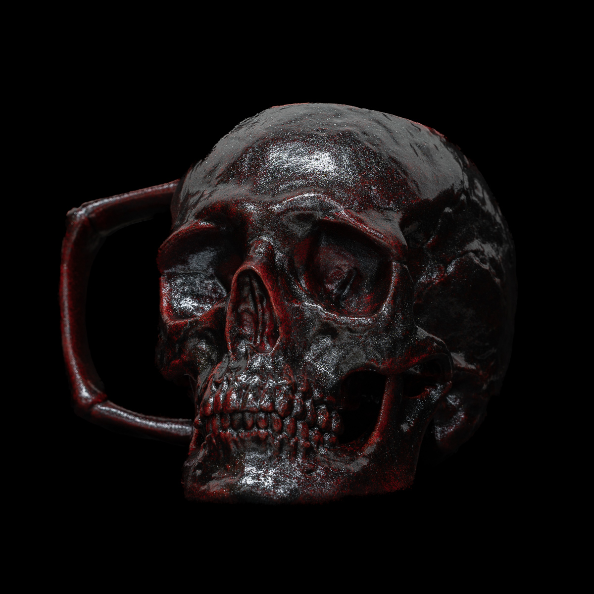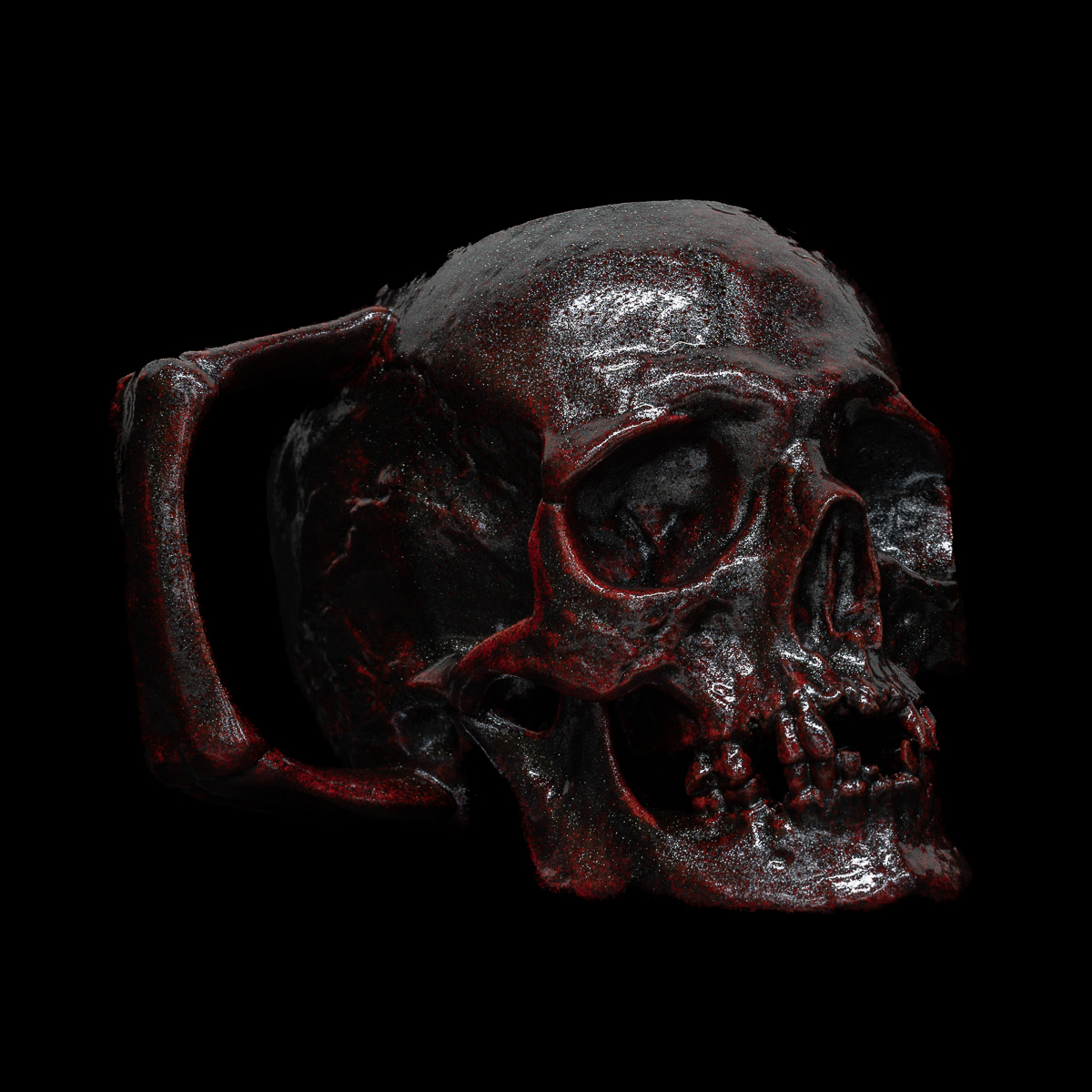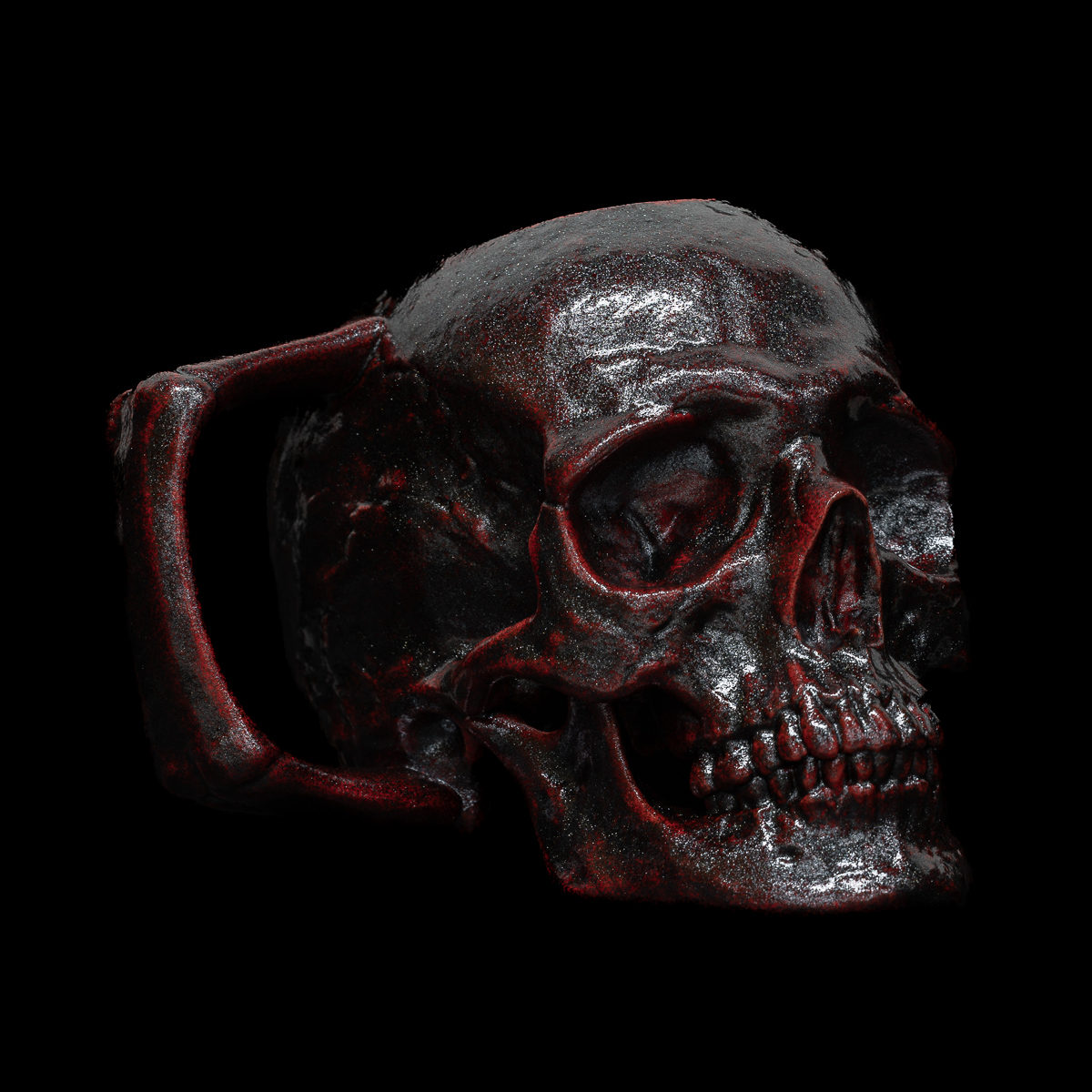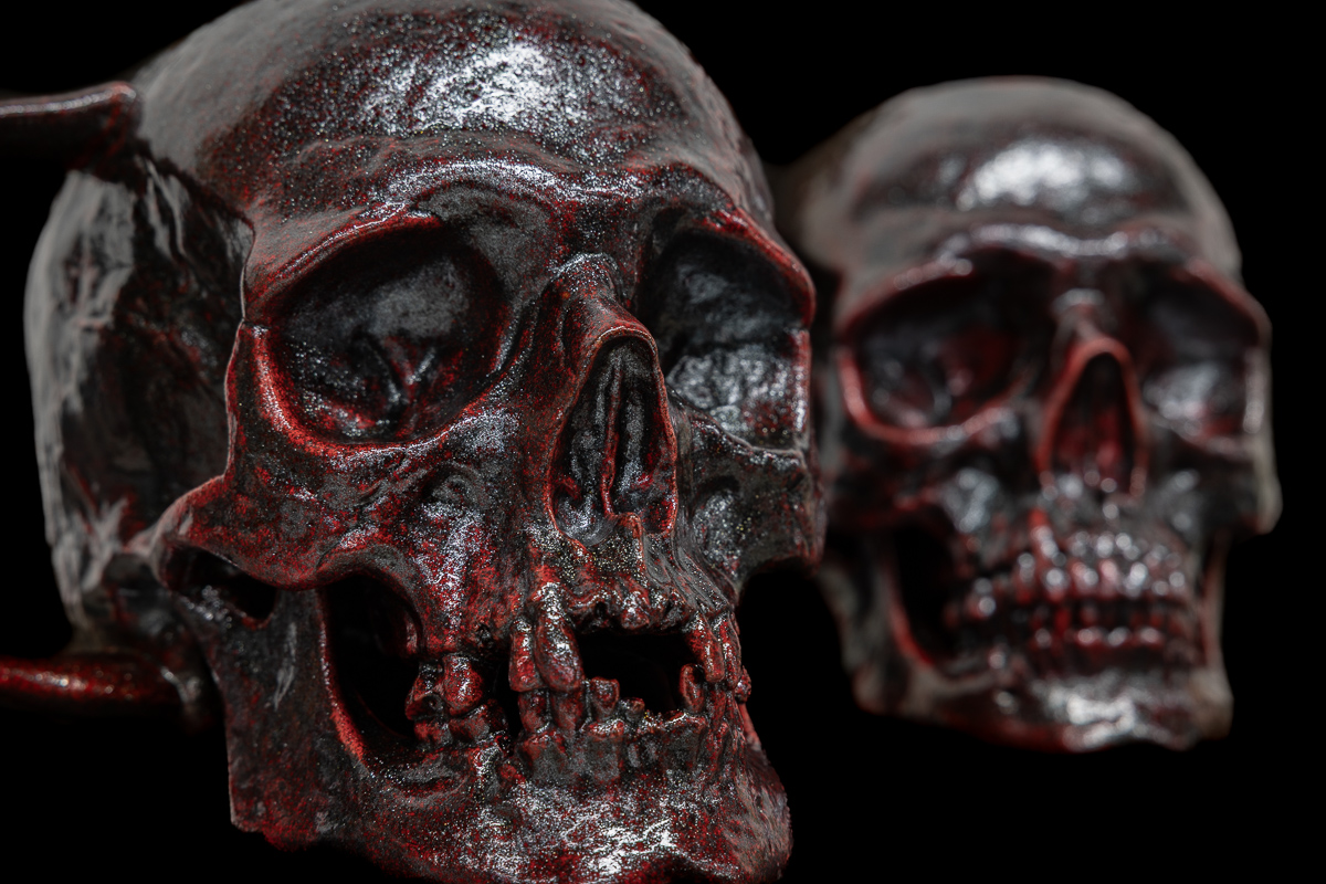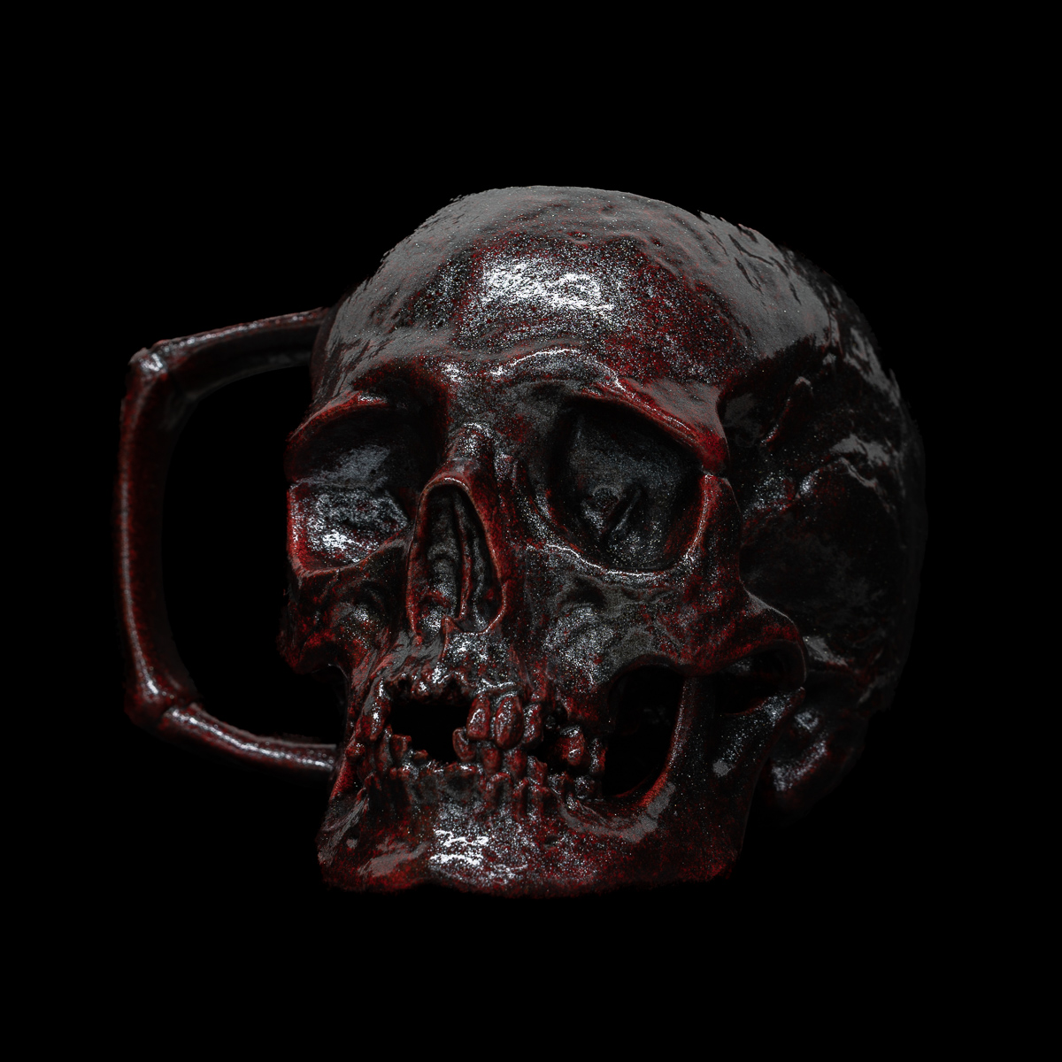 The Bloodstone Skull features a bright red base with metallic black overlays.