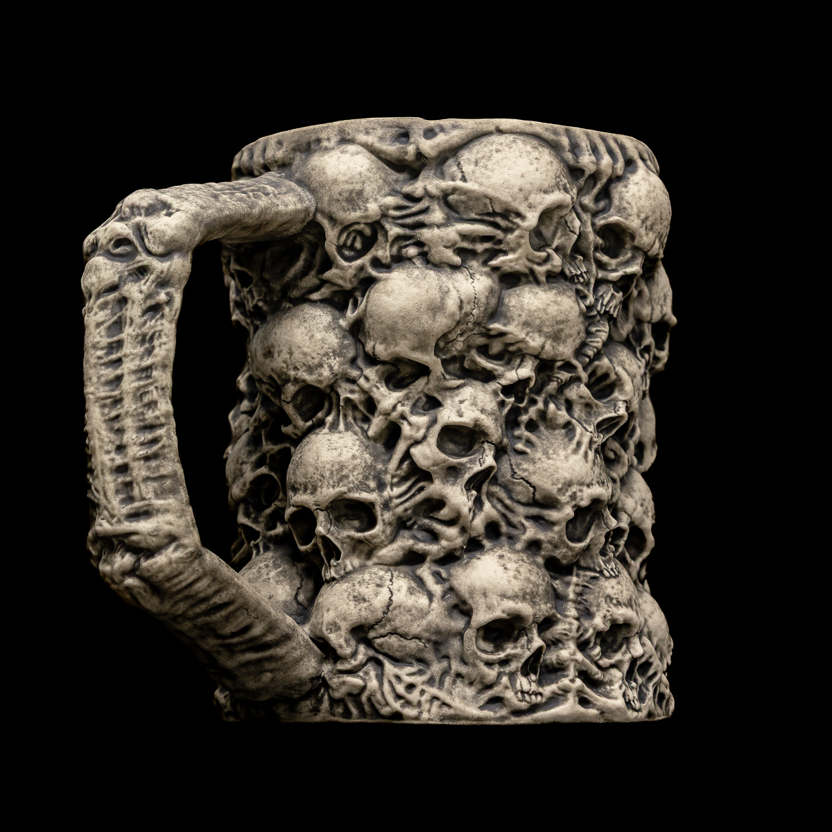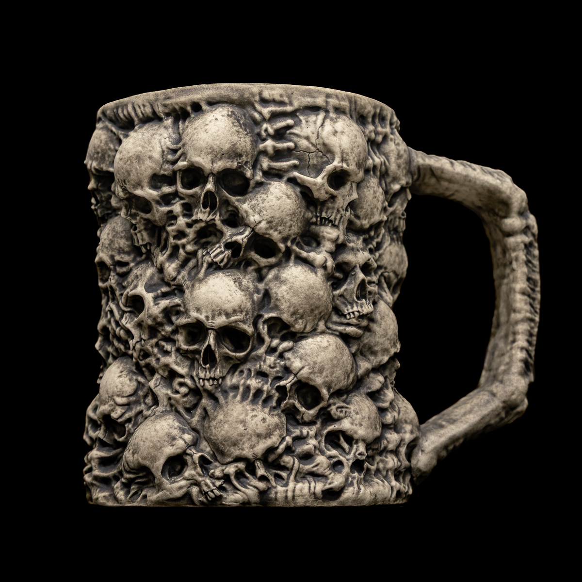 Introducing the Necropolis Mug, a monument of bone and ruin, expertly crafted to hold your morning brew.